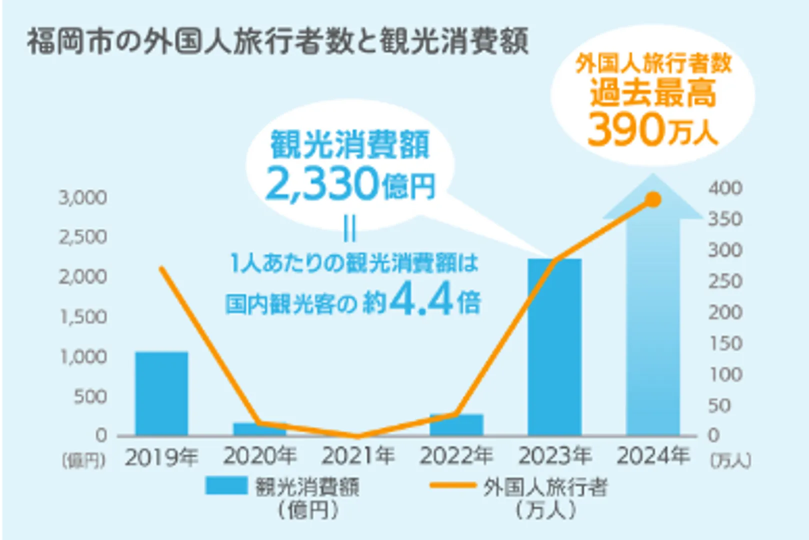 最近、駅や地下鉄をはじめ、街で大きな荷物を持った外国人旅行者を見かける機会が増えたことと思います。それもそのはず、福岡市を訪れる外国人旅行者数は、2024年に過去最高を更新しました。