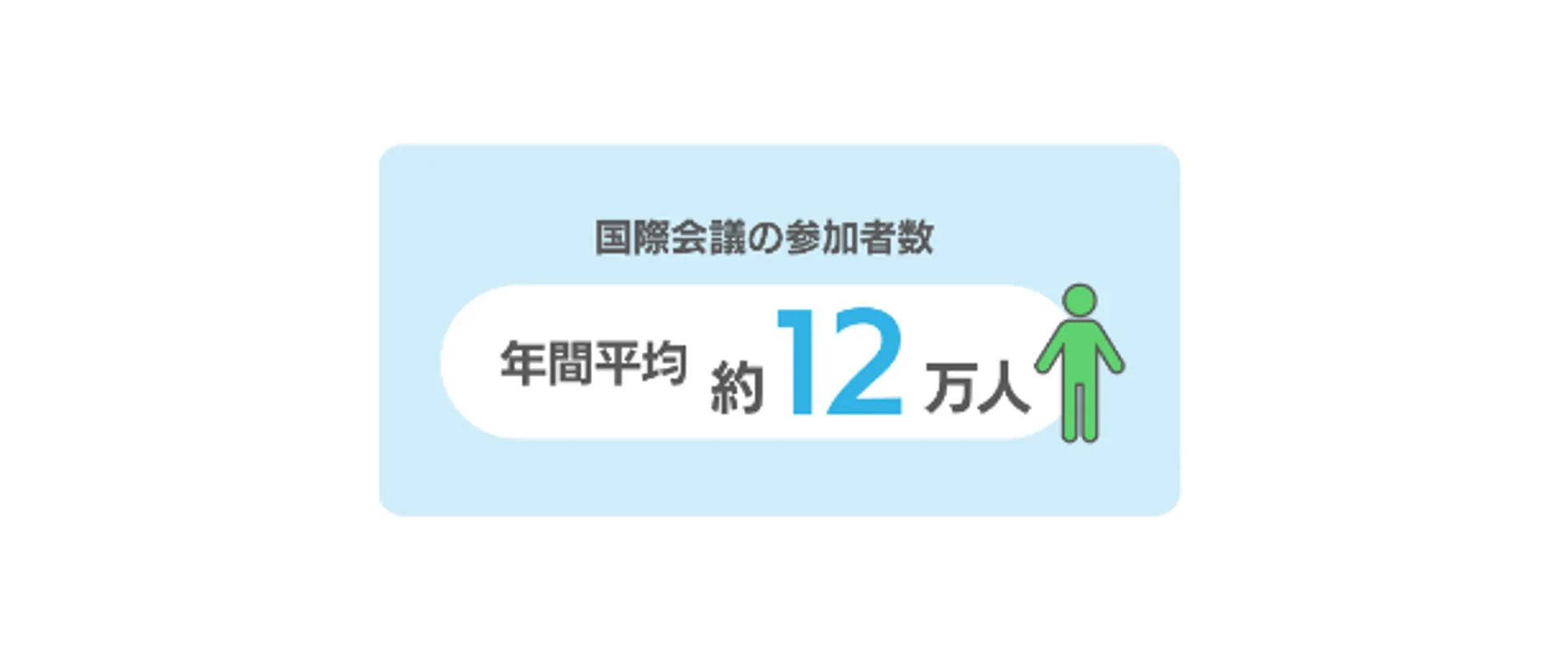 国際会議には、国内外から多くの方が参加しており、年間平均12万人の方が福岡を訪れています。