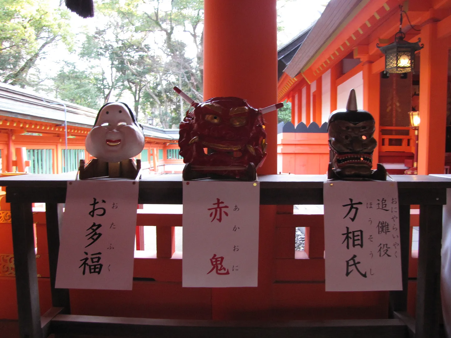鬼を追い払う追儺(おにやらい)の神事と豆まき行事。