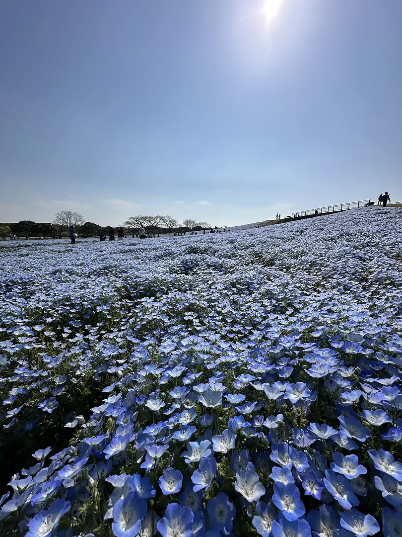 春一番人気の青い花。花の海が広がるかのような、青一色の絶景となっています。