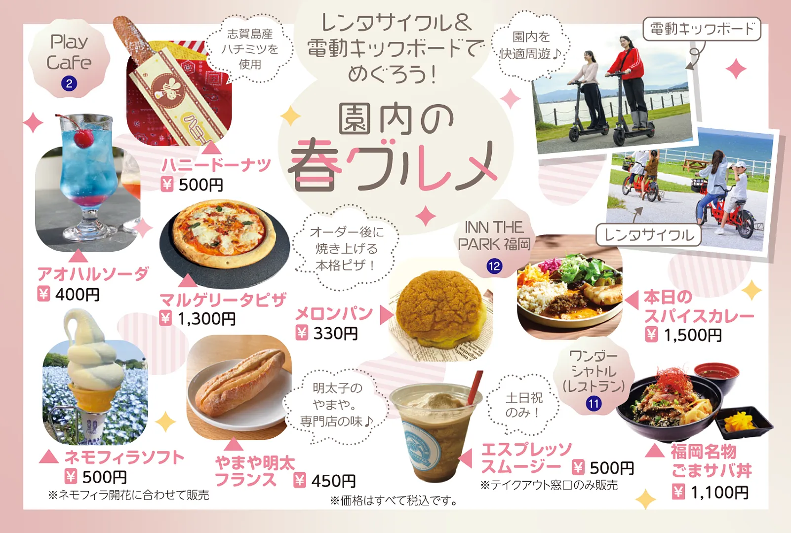 海の中道海浜公園やマリンワールド海の中道、ホテル ルイガンズなど、西戸崎・志賀島エリアで春を感じる景色やグルメ、イベントを探そう!ハッシュタグ「#ウミピク2025」をつけてSNSに投稿すると、素敵なプレゼントが当たるかも。