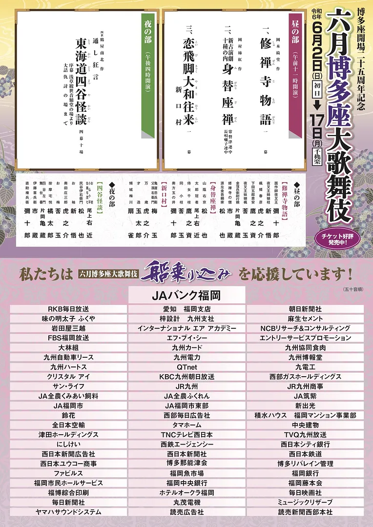 ・特別追加販売(博多座劇場内):「六月博多座大歌舞伎」2024年6月2日~6月17日の公演期間中は、博多座劇場内で特別に販売いたします。