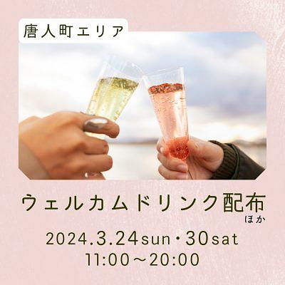 唐人町にゆかりのある『ヤクルト』などのウェルカムドリンクを配布!春のぽかぽかした陽気の中、アーケードのお店めぐりを楽しんでみてはいかがでしょう?商店街のお店でお惣菜やお団子をテイクアウトして花見に向かうのもおすすめです。