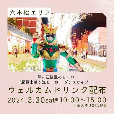 草香江校区の子どもたちに大人気!「超戦士草香江ヒーロー グラスサイダー」のウェルカムドリンク“六本松グラスサイダー”を配布します!(数量限定・先着順)同時開催のサクラまつり梅光宴・緑道さんぽ市にて桜とサイダーの組み合わせを楽しんでみてはいかが?