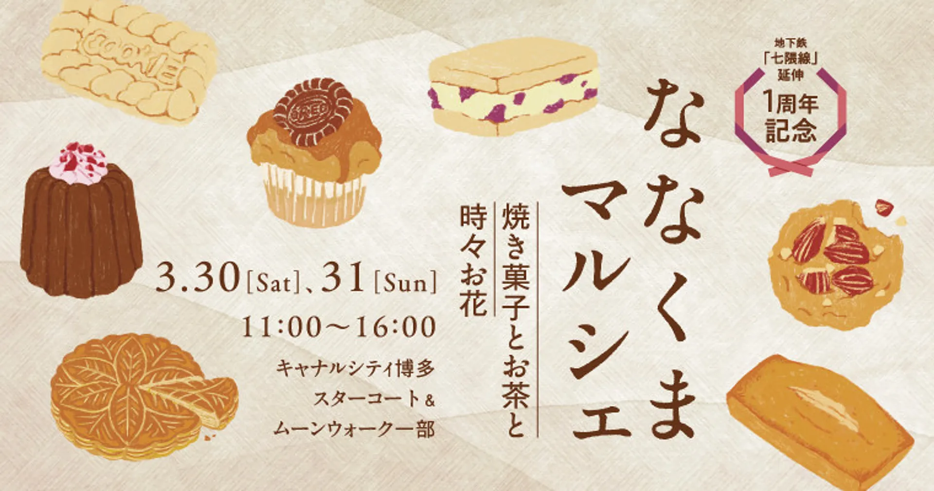 キャナルシティ博多で地下鉄七隈線延伸1周年を記念して「『ななくまマルシェ』〜焼き菓子とお茶と時々お花〜」を開催!