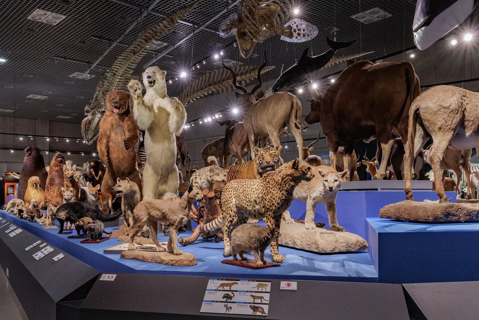 国立科学博物館が誇る剝製標本が約200体「大行進」するエリアが最大のみどころ。トラ、パンダ、オカピやアザラシに、小さなモモンガやモグラまで、自然界でも動物園でも見られない賑やかな「共演空間」をお楽しみください。アジアゾウの全身骨格や、シロナガスクジラの心臓の実物大レプリカなどにも注目です。
