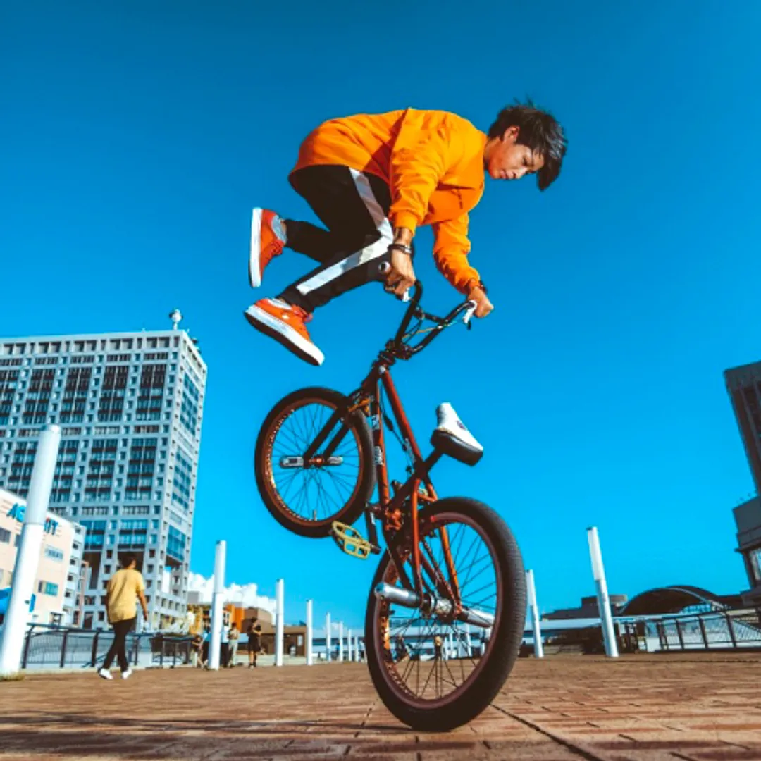 身近な自転車の常識を覆す、圧倒的なパフォーマンス。BMXという競技用小型自転車を使って、平らな地面でスピンやジャンプなどアクロバティックな技を披露。その華麗な演技から陸上のフィギュアスケートともたとえられ、スタイリッシュでダイナミックなパフォーマンスは年齢層を問わず多くの方を魅了する。