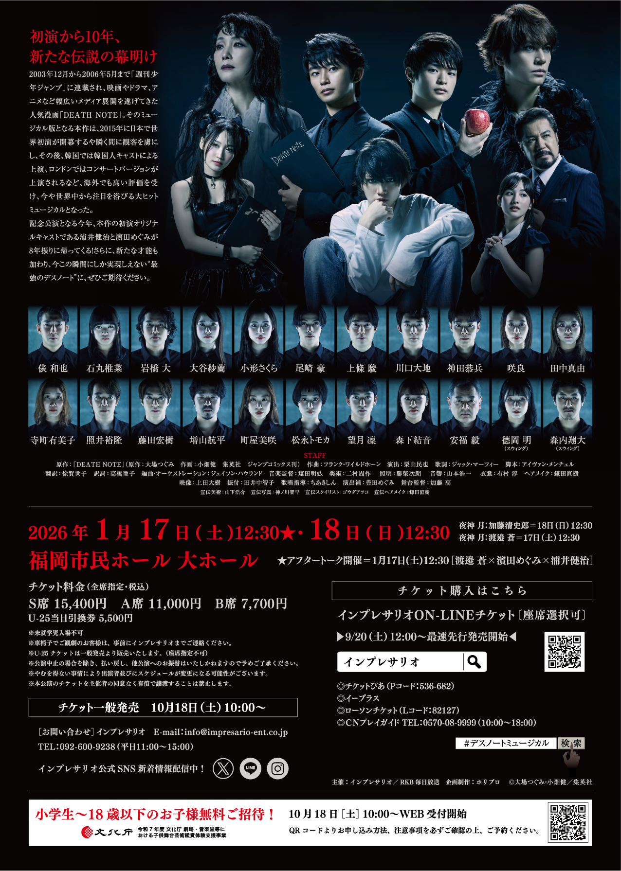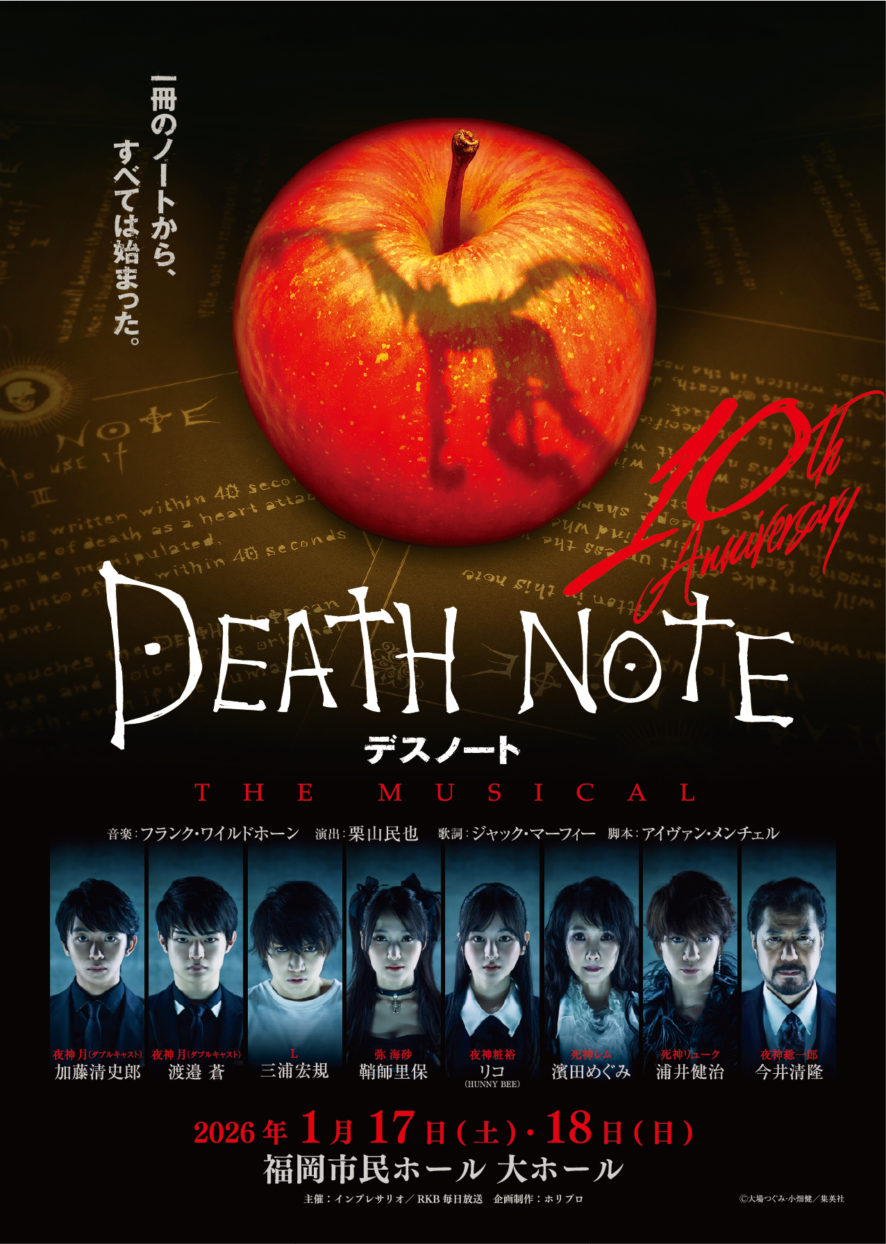 舞台『デスノート THE MUSICAL』【福岡市⺠ホール 大ホール】2026年 ~日本、そして世界で瞬く間に観客を虜にした、あの人気漫画「DEATH NOTE」のミュージカル!