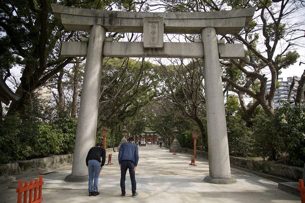 7.鳥居の前で本殿に向かって一礼をする