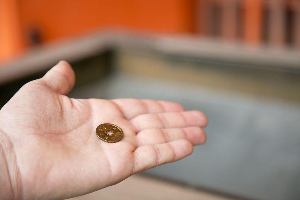 日本語で「5円」と「ご縁」は同じ発音ということで、「よいご縁がありますように」(よい出会いがありますように)という願いを込められ、お賽銭には5円硬貨を使うことが多いのです。