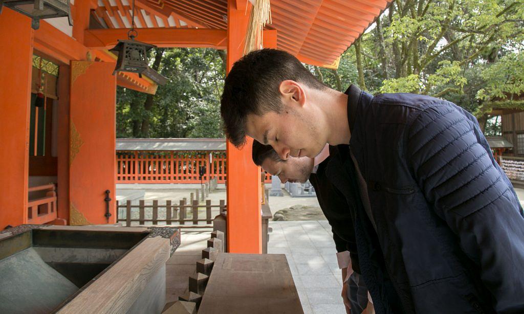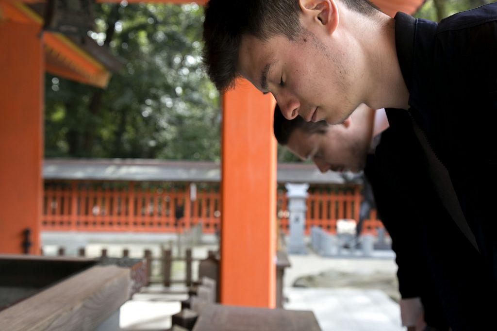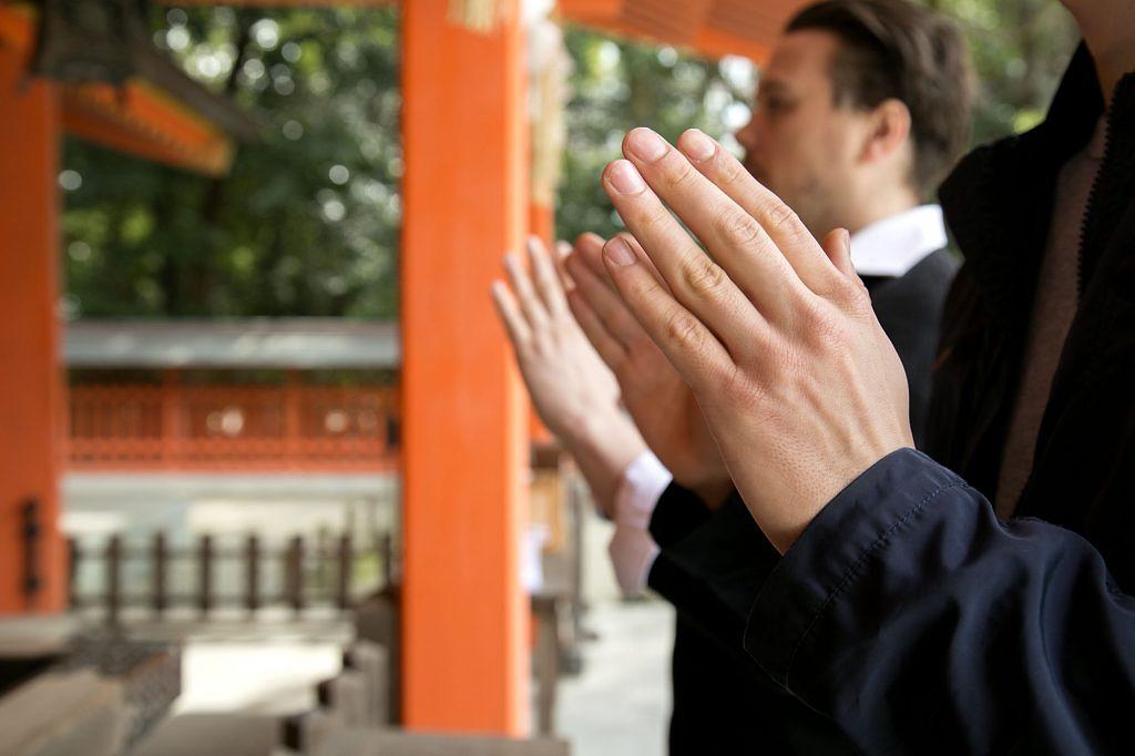 6.「二礼二拍手一礼(にれいにはくしゅいちれい)」礼拝をする