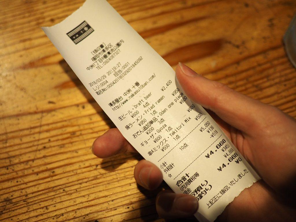 これぞ明朗会計! レシート発行、外国語メニューもある屋台「中洲十番」