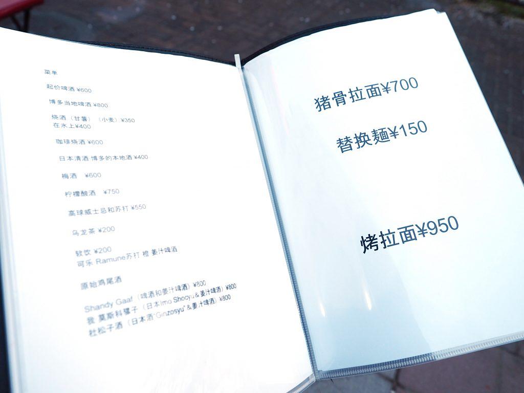 中洲十番のメニュー表。金額がしっかりと表記されているだけでなく、外国人観光客用に翻訳されたものも用意されています。
