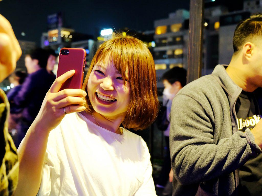 女性のおひとりさまで来店したお客さんも、すっかり笑顔でお隣さんとコミュニケーション。これぞ屋台の醍醐味!