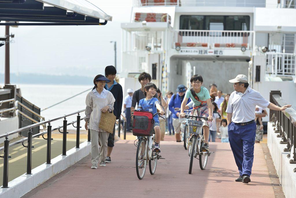 作品冒頭のシーンでいたずらをして、市営渡船で姪浜から能古島に帰ってきたところ。