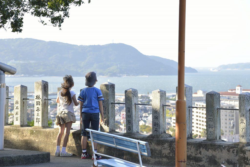 ユイを展望台に案内し能古島を見せる。