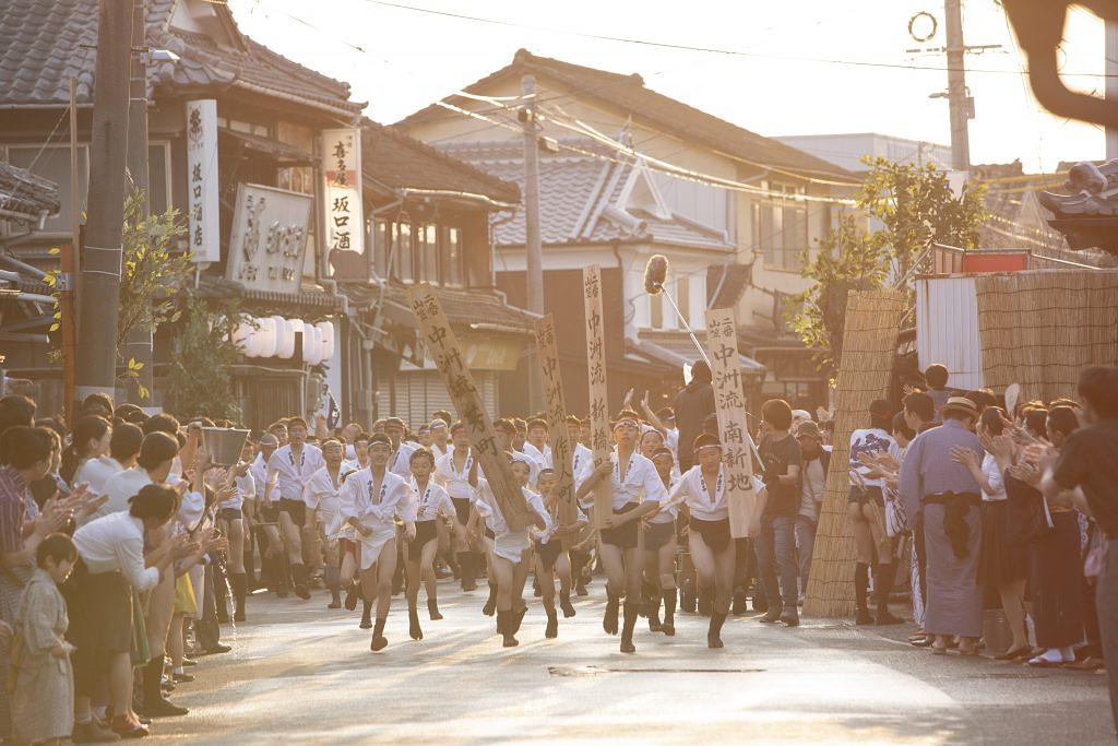 追い山笠(おいやま)の後の直会(なおらい)の会場を後にした2人の様子が撮影されたのは、意外にも舁き山笠のロケ地の八女市ではなく、福津市の津屋崎千軒地区。