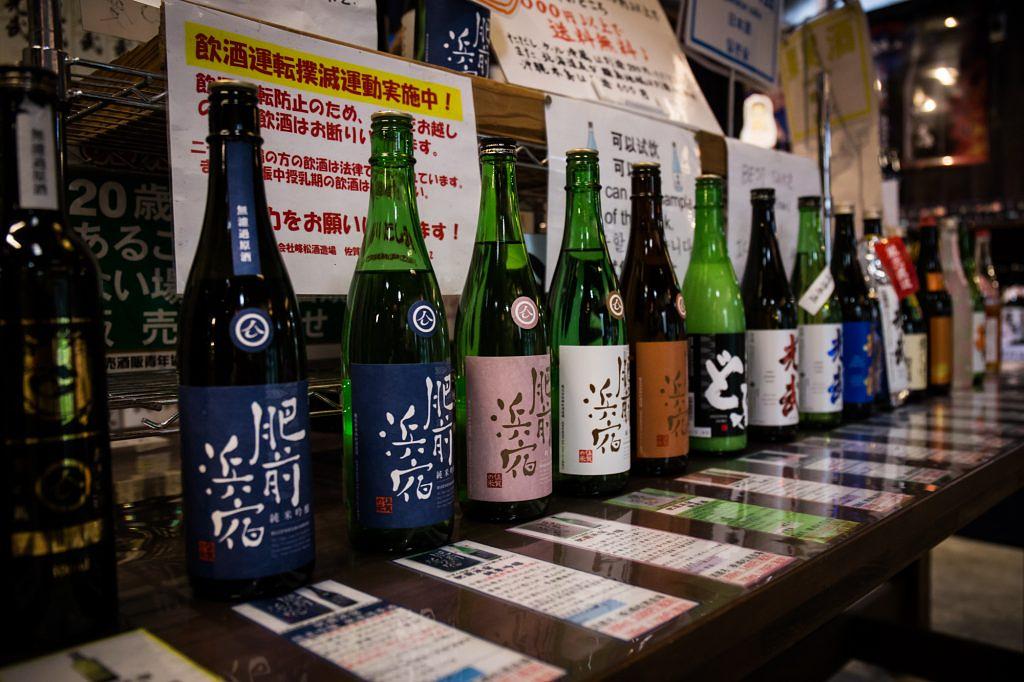 地元の農家【イケマコ】のお米を使用した肥前浜宿シリーズをはじめ、焼酎、果実酒、甘酒・・・豊富な種類のお酒がずらりと並びます。