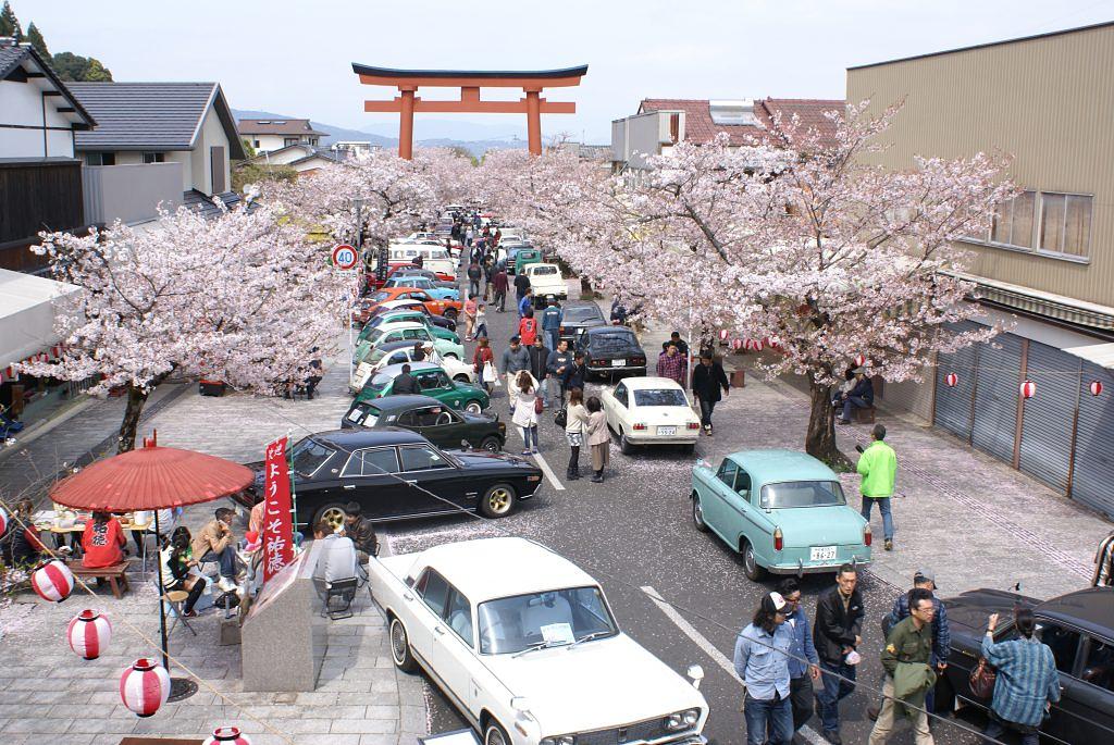 神社へ続く約400メートルの参道には,お土産屋や食事処が連なっており,参拝客をもてなします。春になると風情ある桜並木が,訪れる人の目を楽しませてくれます。