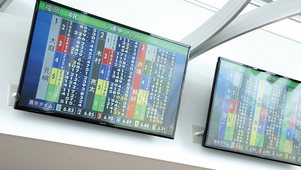 レース終了後、着順確定が発表されます。場内のモニターなどで確認してみよう。また、各投票方法毎の的中した払戻金も発表されます。さあ、手元の「舟券」を確認してみよう!