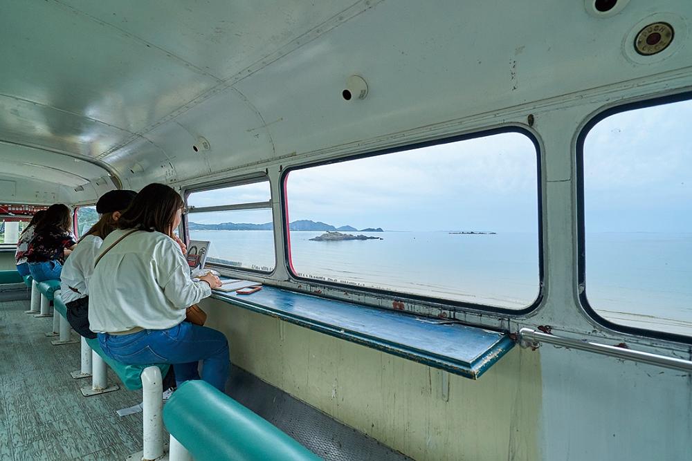 バスの2Fにはベンチが設置され、景色を眺めながらゆっくりと食事ができる。開放的な空間が居心地いい