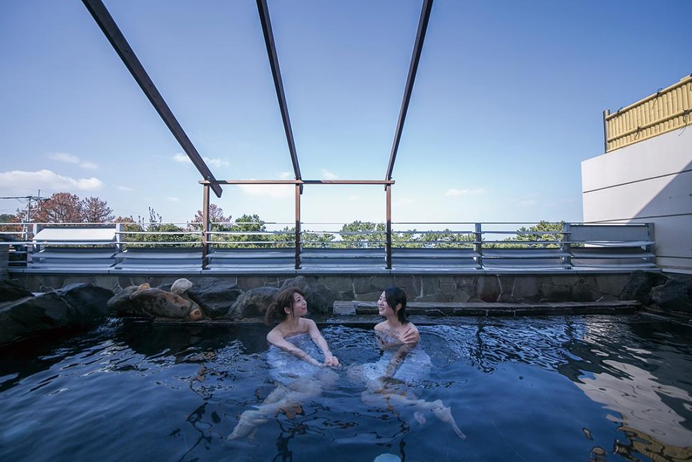 露天温泉から玄界灘を望める「休暇村 志賀島」。立ち寄り利用OK / TEL:092-603-6631