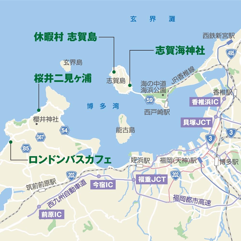 福岡都市高速天神北出入口~西九州自動車道今宿IC ¥770/13.3km 今宿ICを下り、今宿バイパスから国道202号へ。今宿交差点を直進し県道54、567号を進むとロンドンバスカフェに到着