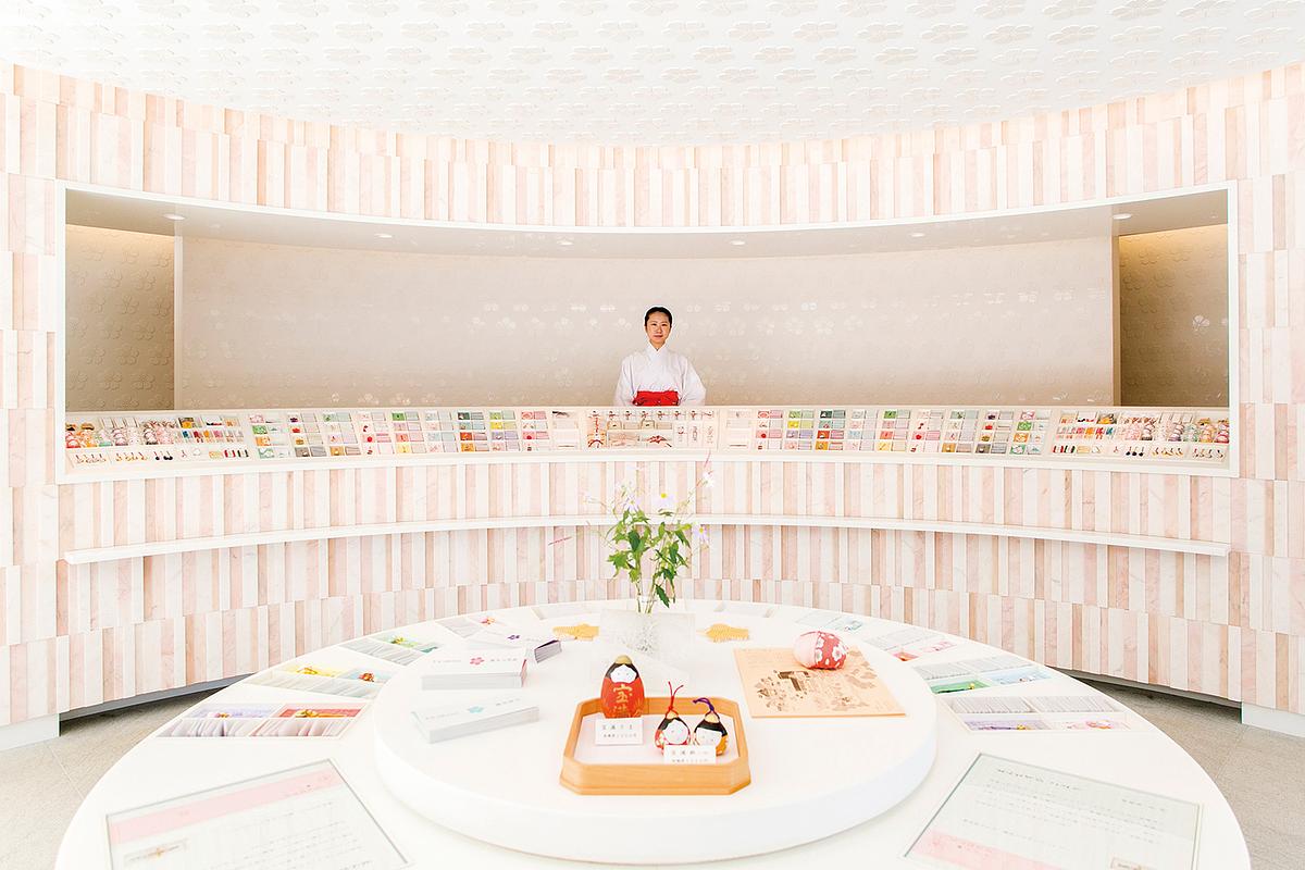 縁結びの神様として多くの女性が参拝。世界的なインテリアデザイナー・片山正通氏が手がけた授与所は鮮やかでかわいい場所”として全国に拡散されている。かまどをイメージした円形がキュート。
