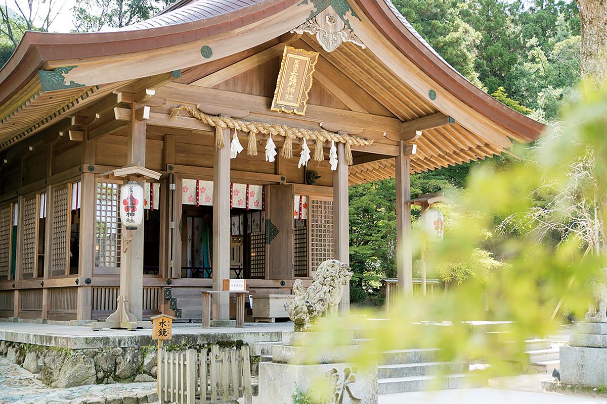 鎮座1350年の歴史をもつ。宝満山の麓にあり、11月中旬からは紅葉を楽しめる。登山スポットとしても有名