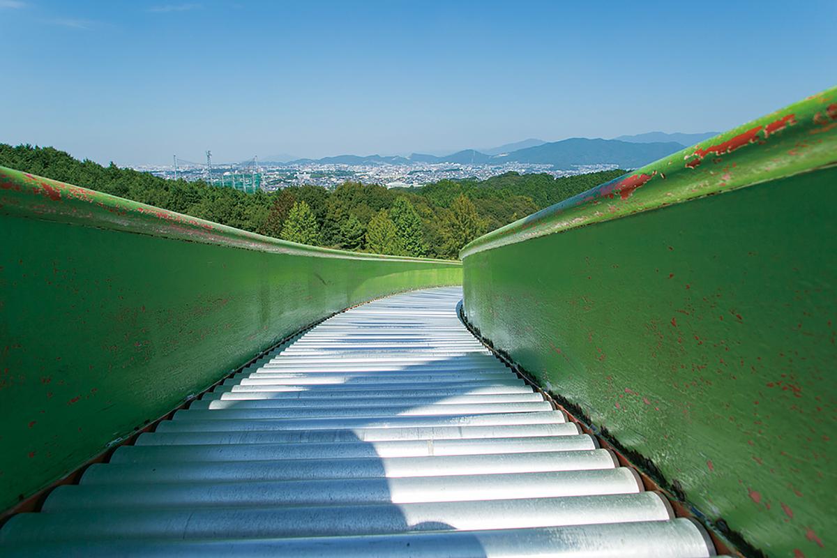 高さ20mから下る「ローラーすべり台」。意外とスピードが速いので、敷物を利用した方がお尻に優しい