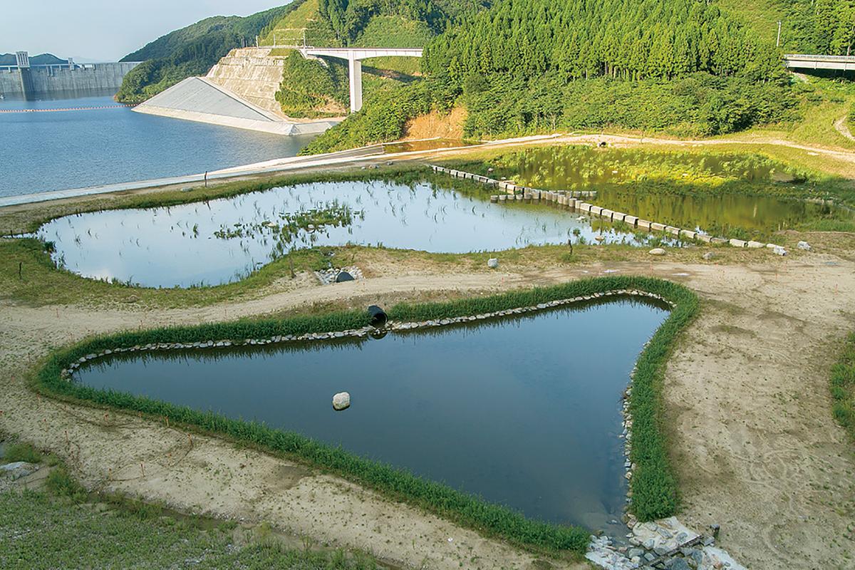 ダム内にあるビオトープにはトンボやカエルなど多くの生き物が生息
