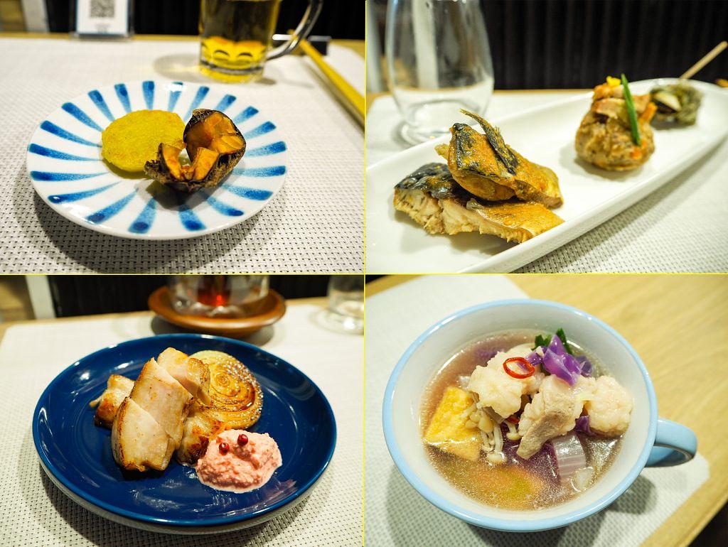 銀杏餅、鯖のぬか炊き、具沢山の「MOTUNABE」(写真右下)など多彩。「BARA(豚)」(¥550・写真左下)は、豚骨ラーメンをイメージし紅生姜のソースを添える
