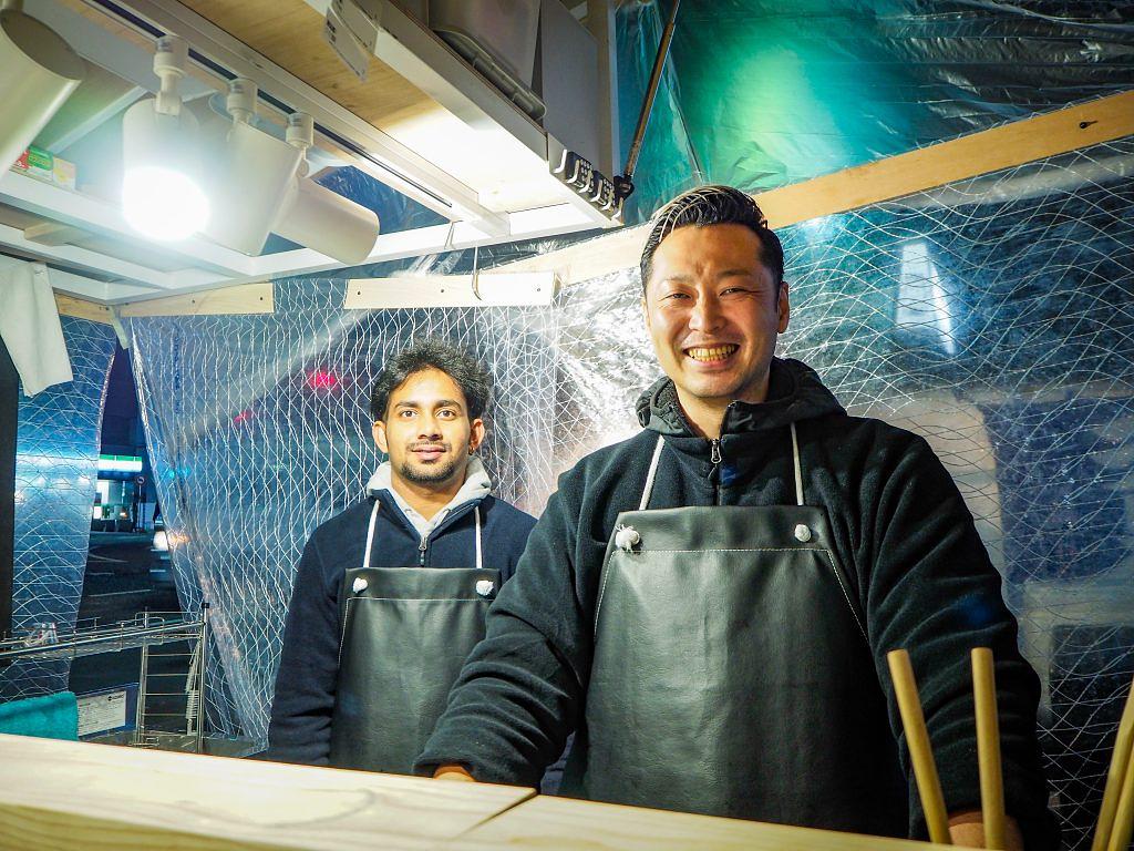 気さくな人柄の榎田さんと、スリランカ出身のスタッフ・カスンさん(左)。笑顔で迎えてくれるので、屋台ビギナーも安心