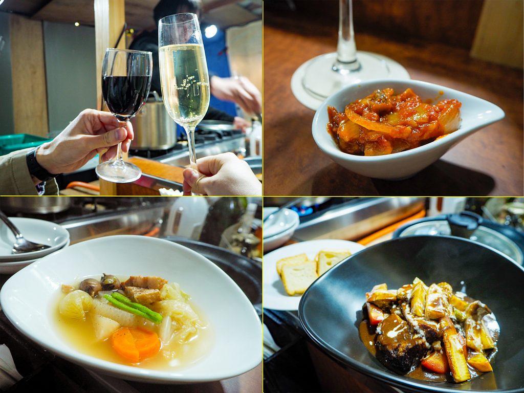 「料理を待つ間、ワインのお供にどうぞ」と、お通し(写真右上)のサービスが。さりげない心遣いがうれしい