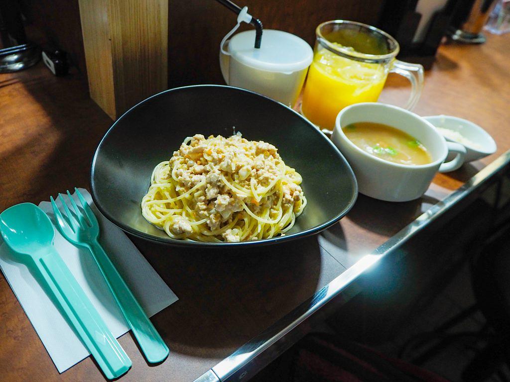 写真は鶏ひき肉や野菜を煮込んだ「ホワイトボロネーゼ」。素材の旨味とまろやかなクリームがパスタに絡む