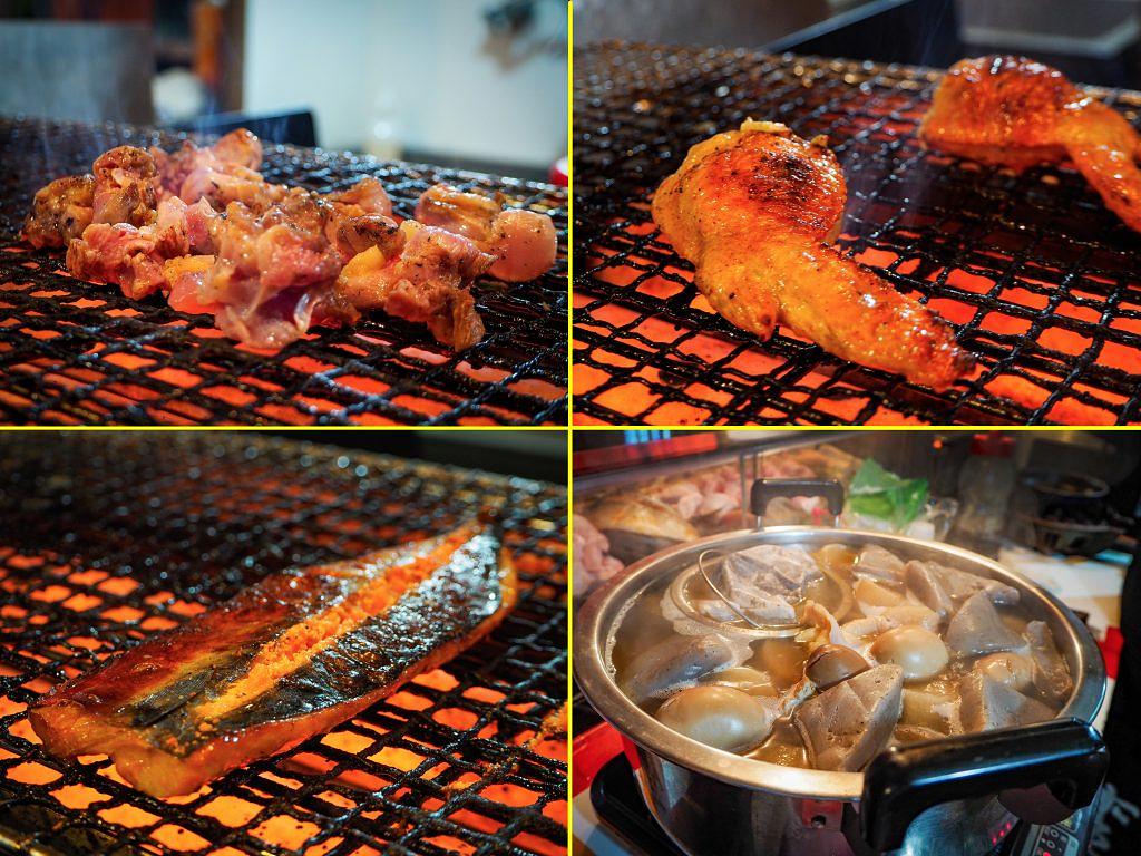 左上から時計回りに、福岡の銘柄鶏「華味鳥」の親鳥を使う「地鶏の網焼き」(¥900)、「手羽先ギョーザ」(2本¥700)、「おでん」(5個¥900)、「サバめんたい」(1本¥700)