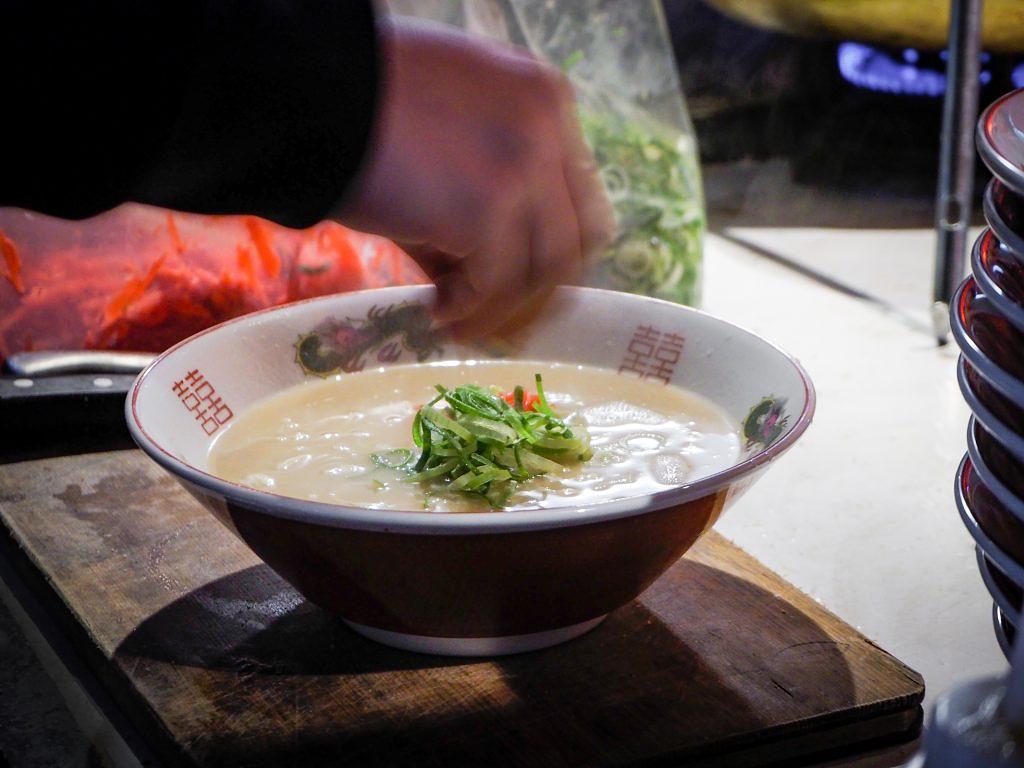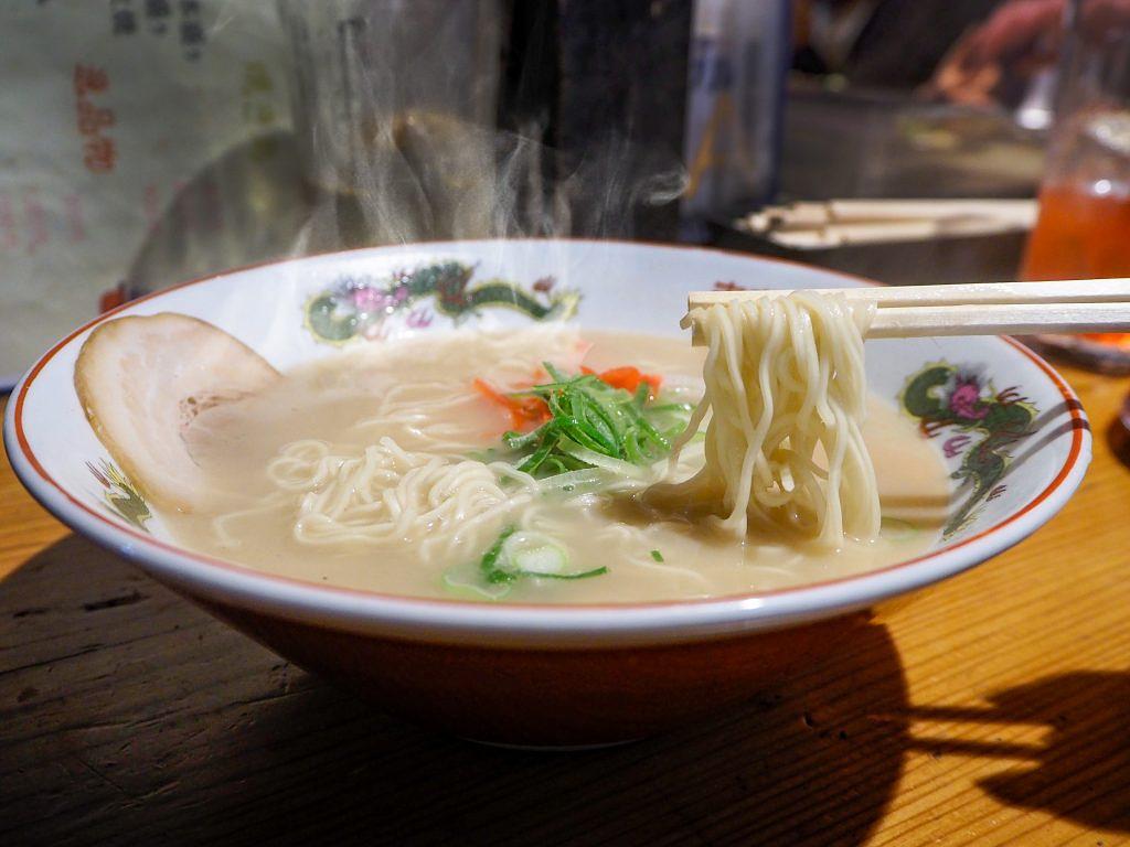 また、締めには豚骨ラーメンをお忘れなく。「博多屋台よっちゃん」の自慢は、豚の背骨とゲンコツを丁寧に炊き上げた豚骨100%のスープ。寸胴の中で骨を砕くように炊き続け、継ぎ足しながら仕上げたまろやかでクリーミーな味わいがたまりません。