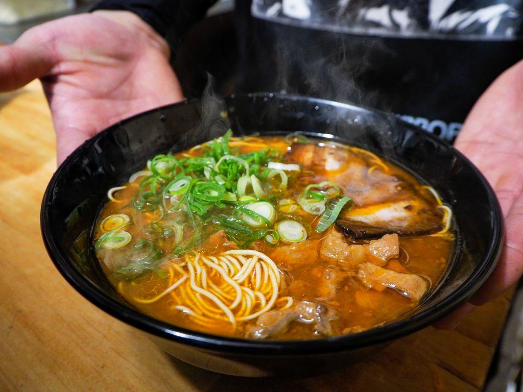 少しだけ食べたい時にオススメの「ハーフラーメン」(¥500)から、ラーメンの元ダレで煮込んだ焼豚がのるチャーシュー麺(¥850)や、焼きラーメン(¥750)など、バリエーションも約8種と豊富。気分に合わせて選べるのが嬉しいですね。メニューに「博多らしさ」と創意工夫が生きた天神屋台の新星。ぜひ、ふらりと立ち寄ってみては?