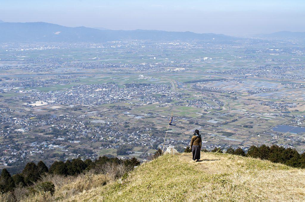 高良大社から県道750号をさらに15分ほど進むと、複雑な三叉路に突き当たる。「星野村」方面へ向かう中央の道を登り詰めると、左手にグライダー山の登り口が出てきます。車を止めて山道に入り、木の階段を5分ほど登ると、急に視界が開け、まるで筑後平野に飛び出したような景色が目の前に広がります。夜景スポットとしても人気です。車道は狭いので運転は慎重に。