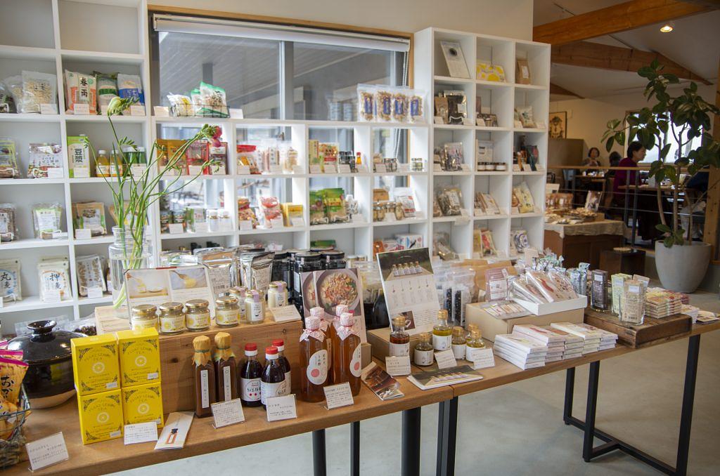 カフェ「坂の下の店」では、ランチやスイーツが楽しめる他、売店に並ぶ安心安全な食材は充実の品揃え。オリジナルの調味料も充実