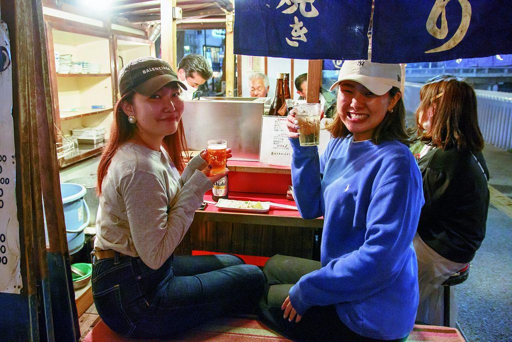 屋台が賑わいだしたpm7:30。東京から来た女性2人組がふらりと入店。学生のときからの友人で共に24歳、美味しいものを食べようと福岡旅行に来たのだそう。GoToトラベル(※)を利用してきたらしく、「通常2万円のホテル代が今回7千円だったんですよ~」と嬉しそう。