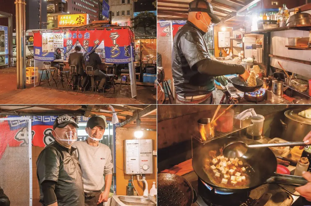 福岡天神駅より徒歩2分の場所にある屋台「宗(むね)」。お父さんがされていた屋台を継ぎ、2代目大将になったという。先代のときは天ぷらや焼鳥がメインだったが、大将が引継ぐ際に中華料理を活かしたメニューへとリニューアル。