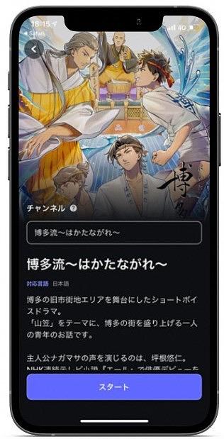『博多流〜はかたながれ〜』は、中世博多の街を舞台にした、オリジナルの音声ドラマです。「祇園山笠」をテーマに、博多の街を盛り上げる一人の青年の物語で、博多を発祥の地とする「うどん」や、「黒田官兵衛」など歴史上の人物も登場する、博多らしくたくましい物語となっています。