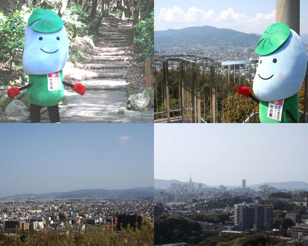 福岡市動植物園の近くにある南公園西展望台は、知る人ぞ知る穴場スポットです。整備された展望台を登ると、能古島や海の中道、福岡市の繁華街や住宅地など360度の景色が広がります。