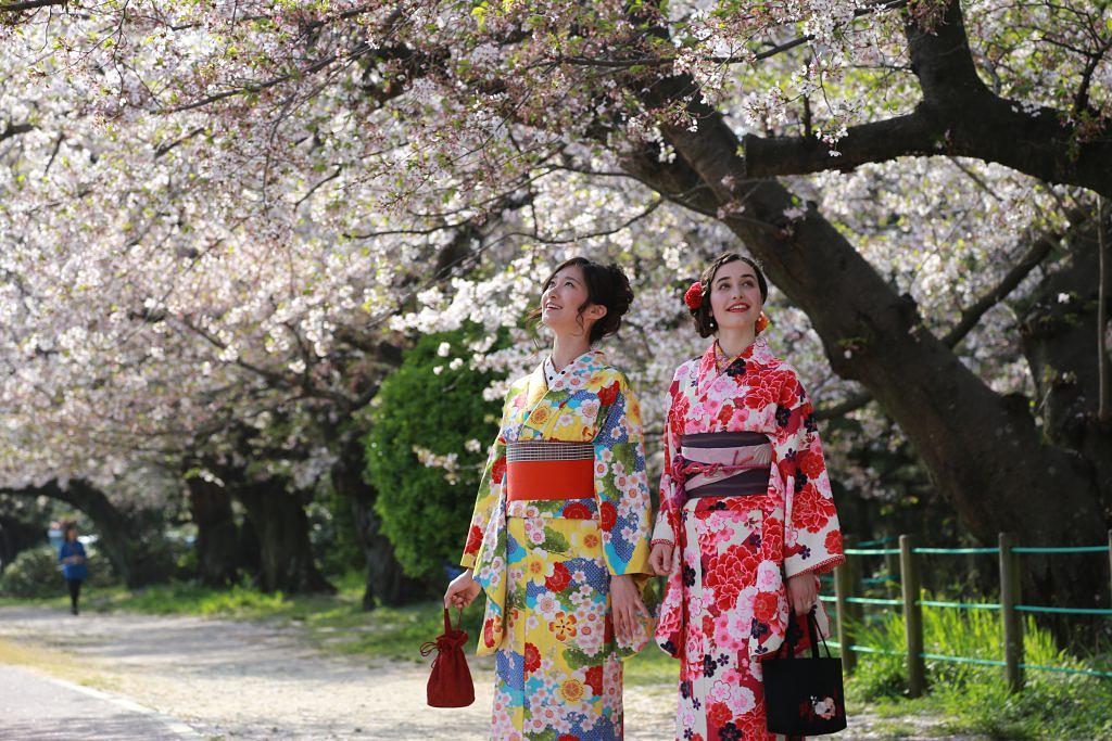 大人も子どもも楽しめる忍者の衣装や、私服に合わせる着物ジャケットもあります。デザイン性の高いブランド着物は特に若い方に人気があります。「福岡城・鴻臚館跡エリアは着物が似合う場所です。着物姿にぴったりの写真スポットもたくさんあるので、撮影もお楽しみください」と店長の松永さん。桜の時期は混み合うので早めの予約がおすすめです。