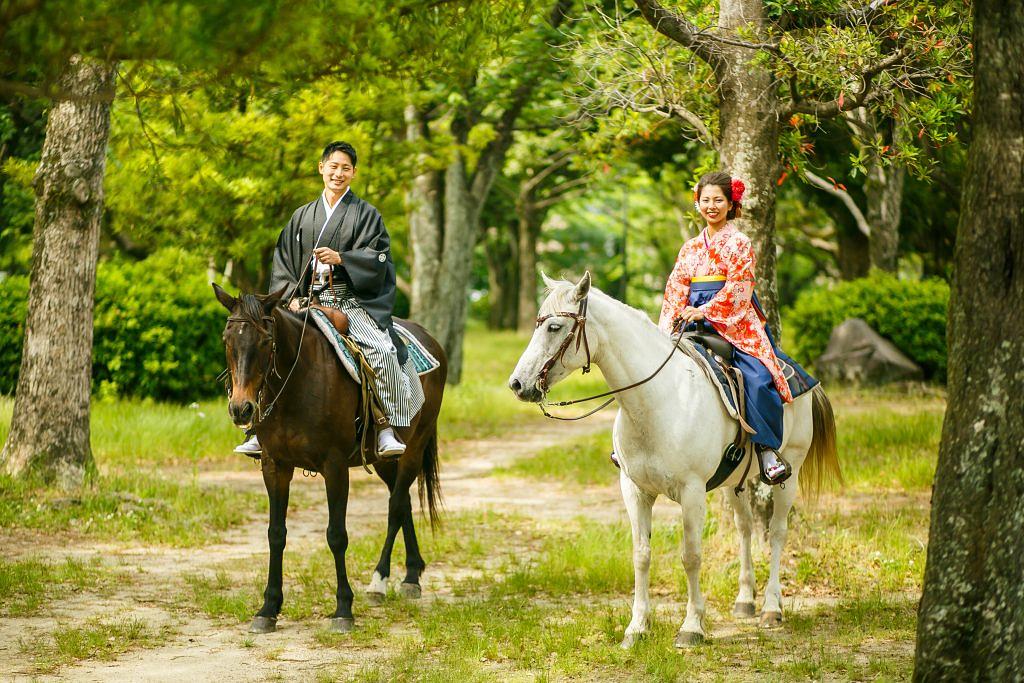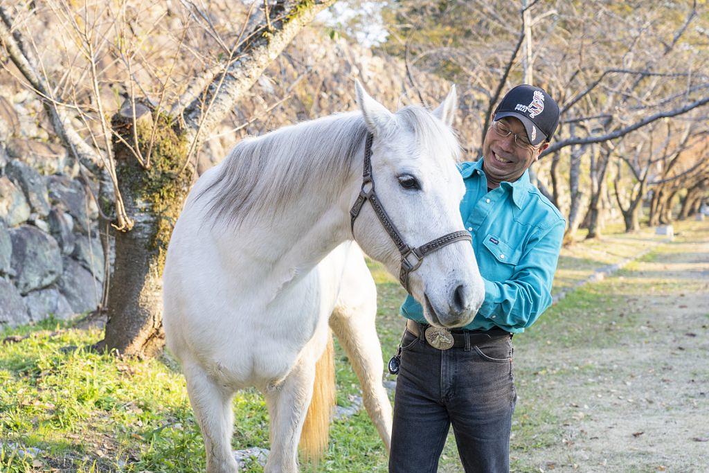50年以上の乗馬経験があり、大分県久住高原の乗馬施設「ココペリ ウエスタン ライディング」で長年指導を行う代表の宮本さんをはじめとするプロによる体験ですので、初心者でも安心して参加できます。「郊外ではなくまちなか、しかも城跡で乗馬ができるのはとてもめずらしいことです。時間の長いコースでは馬に乗って城郭に入ることができますよ」。着物姿での乗馬など、福岡城跡ならではの体験も可能です。