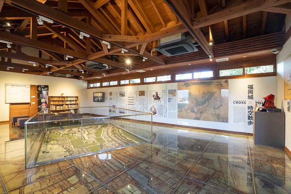 鴻臚館広場の前に位置する「福岡城むかし探訪館」は、福岡城の歴史を体感できる案内施設です。館内には江戸時代後期の福岡城を400分の1縮尺で再現した模型があり、かつての様子に思いを馳せることができます。