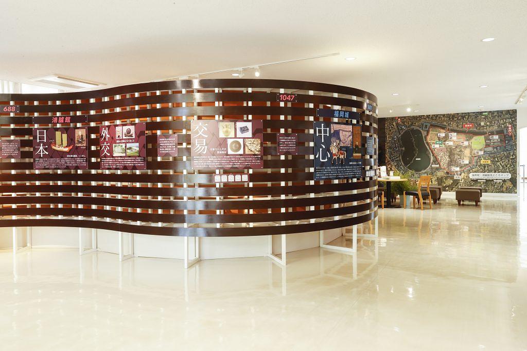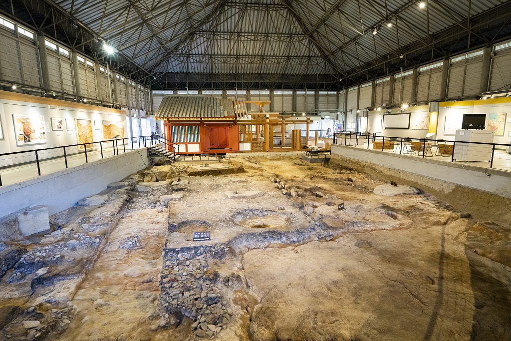 1987年に行われた平和台球場の改修工事の際に発見されたことで本格的な調査が始まり、その後、展示館として公開されました。遺構の上に建つ館内では、本物の遺構を間近に見学できるほか、海外との交流が見て取れる出土品や資料などを展示しています。まだ解明されていないことも多いので、想像をめぐらせながら歴史のロマンに思いを馳せてみてはいかがでしょうか。
