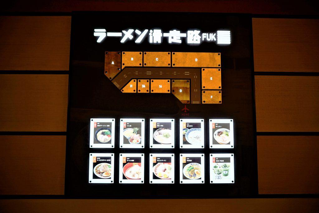 福岡といえばラーメンが欠かせないですね!3階にある「ラーメン滑走路」には、滑走路に見立てた空間にラーメン店9店舗とスイーツ1店舗があります。福岡の代表的な豚骨ラーメンはもちろん、東京や鹿児島のラーメンもあります。おいしそうな香りがしていて、どの店で食べようか迷います!