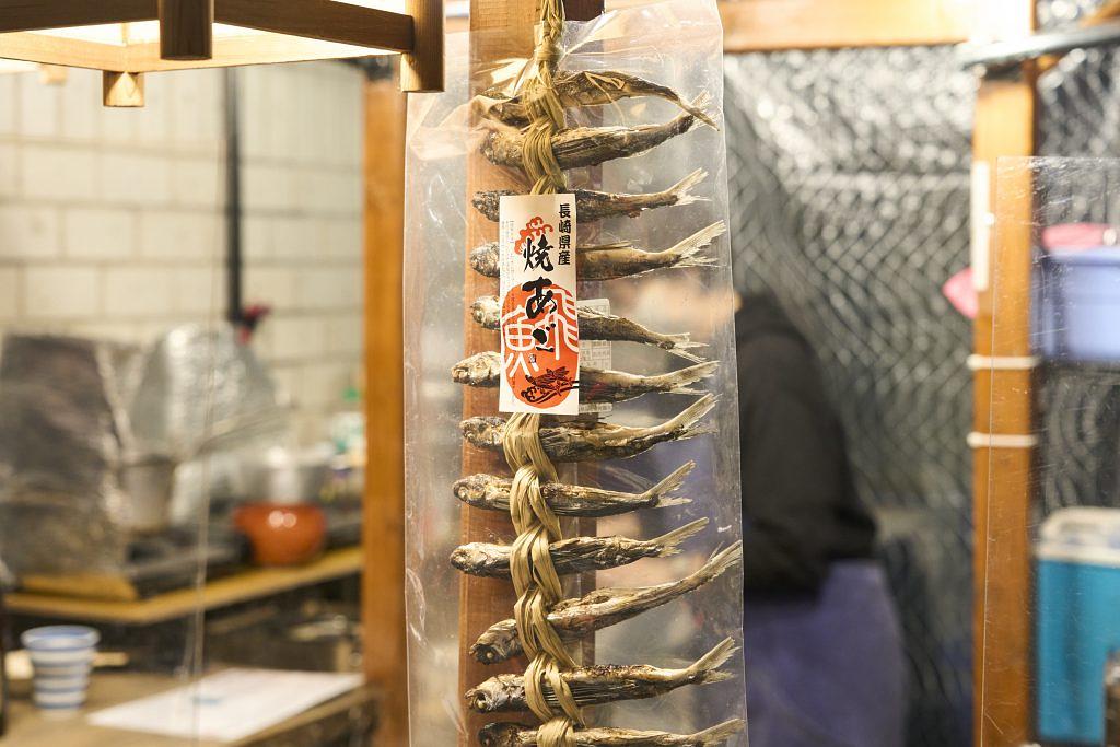 店内には、料理に使用している長崎県産の焼きあごが吊るされている